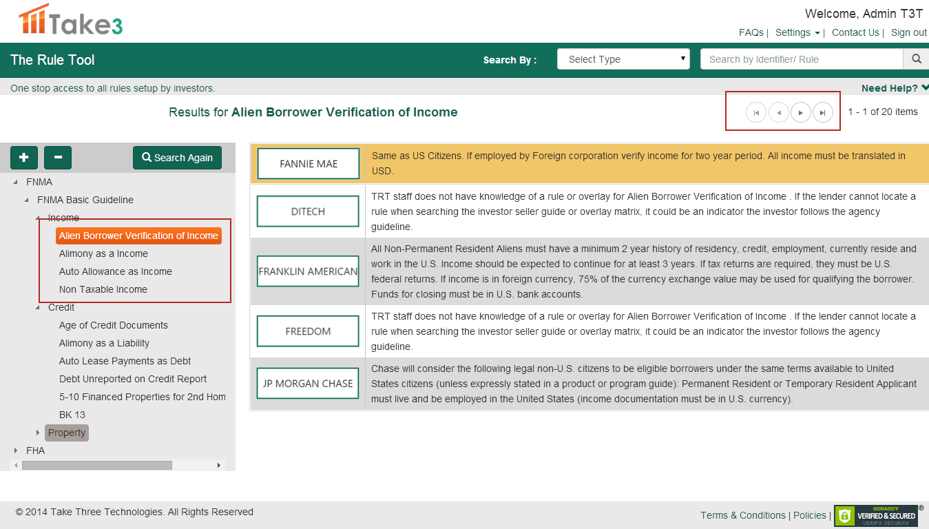 As a result of the myriad of lending industry changes, there has been a substantial increase in the number and diversity of investor overlays with that lenders must check. Meanwhile, you may have lost a loan or lock because you weren’t aware of an investor’s specific requirements. The Rule Tool obliterates that time consuming process of researching and confirming investor overlays one website at a time. With a click of a button, you can quickly match a borrower’s unique situation to various lender rules, thus eliminating unnecessary delays, assuring your lock and delivery will be valid, and increasing your overall productivity.